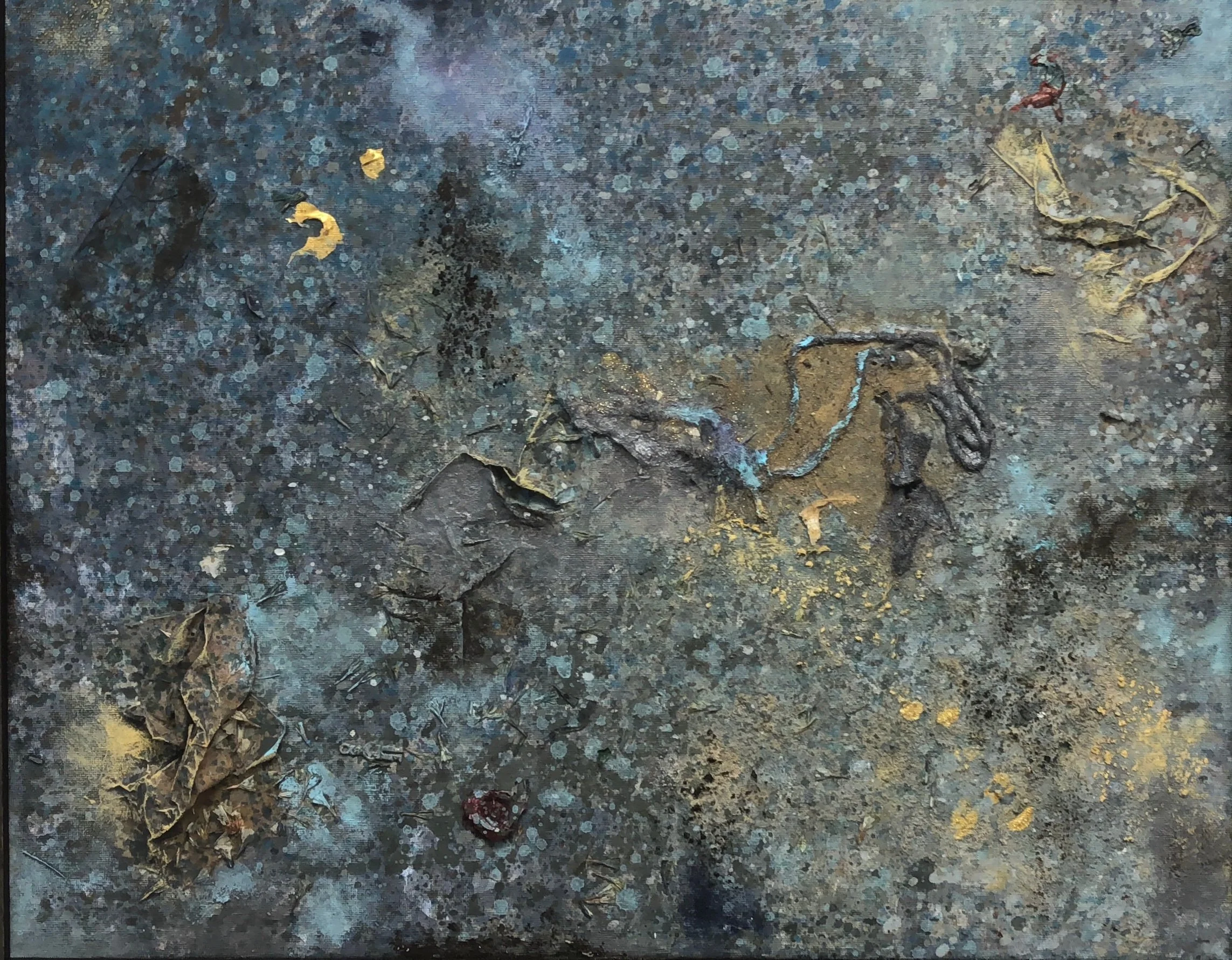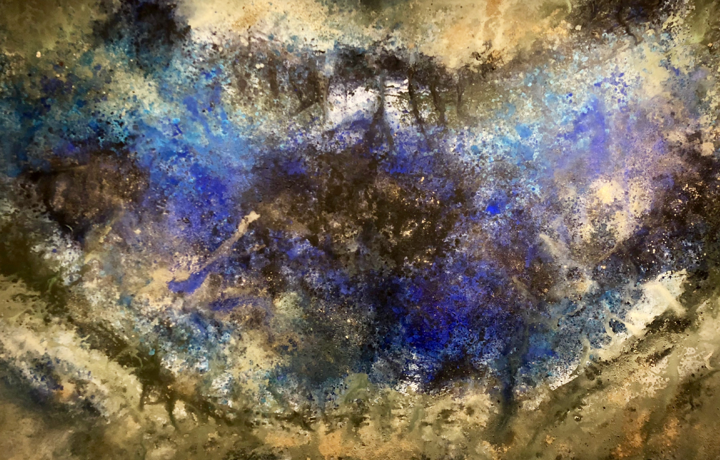 Through her enormous canvases, Krytzia transmits her energy, and reflects what unfolds before her eyes in her workshop. Through reflection she illustrates the great origins of all life through the ocean.